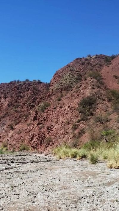 El recorrido comienza entre formaciones rojizas y senderos que serpentean al ritmo del cauce. A medida que avanzamos, el contraste del entorno sorprende: de la aridez del desierto emergen pequeñas vegas, higueras dispersas y vertientes que fluyen desde el subsuelo, como hilos de vida en medio del monte. Caminamos al costado de la quebrada, entre piedras que el viento y el tiempo fueron modelando, rodeados por el aroma de hierbas nativas y el sonido permanente del agua.